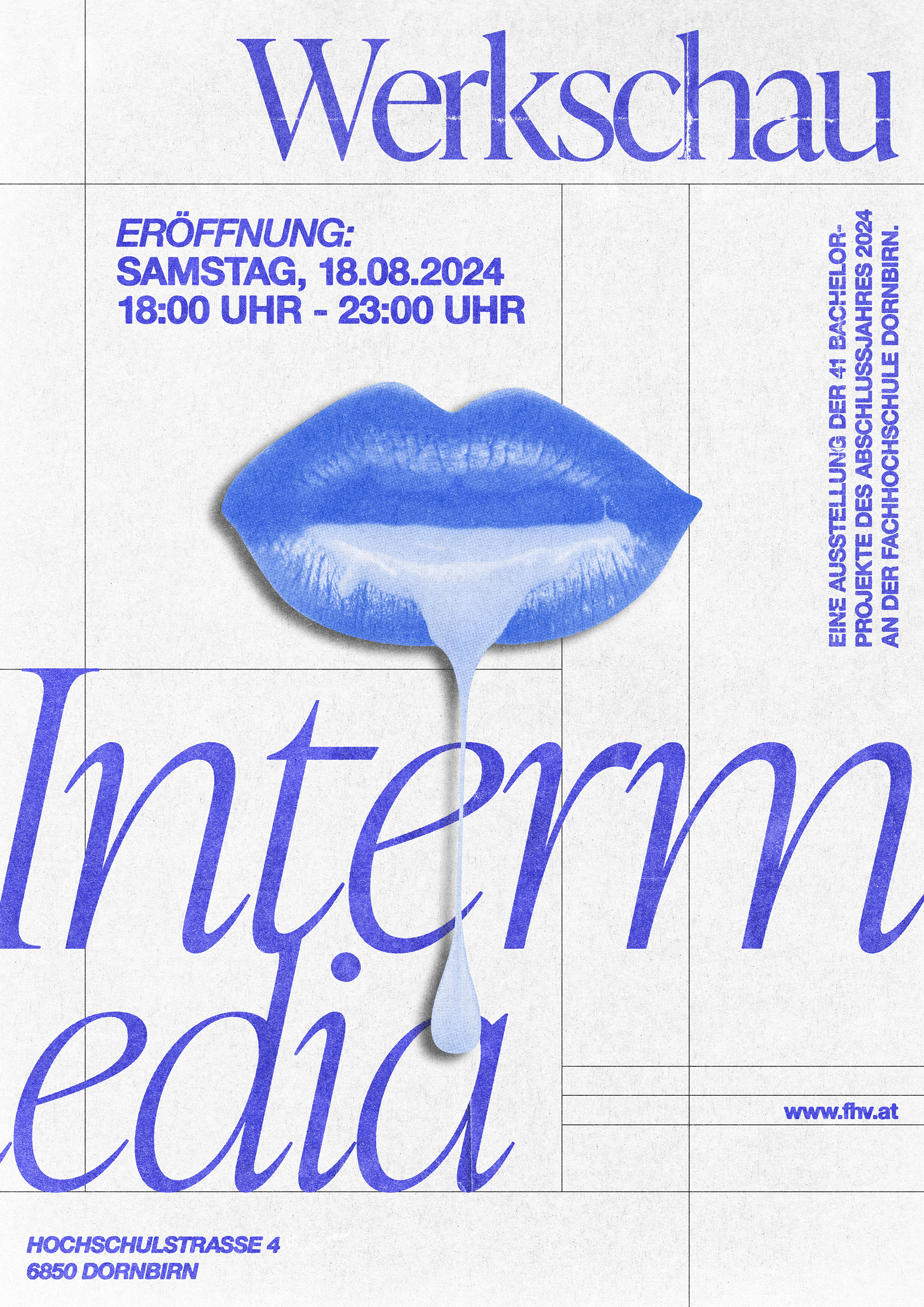 Dieser Projektentwurf entstand anlässlich der Werkschau des sechsten Semesters der Fachhochschule Dornbirn, bei welcher die entstandenen Bachelorprojekte ausgestellt werden. Angedacht ist das Layout auf Plakaten der Größe Din A1.